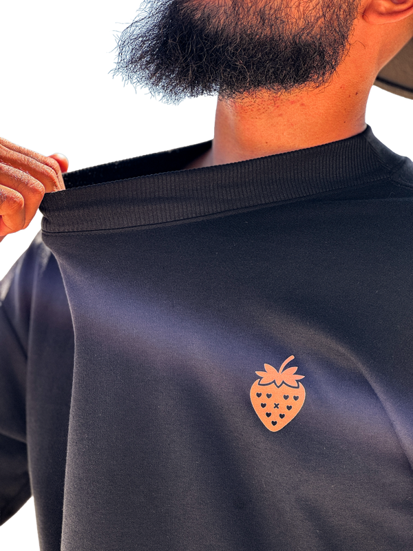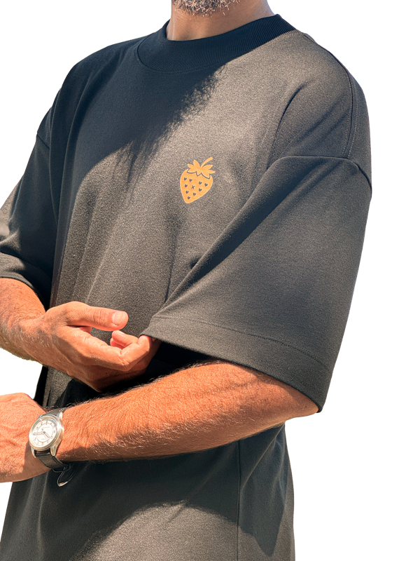 A modelagem oversized proporciona um caimento amplo e confortável, equilibrando liberdade de movimento e estética moderna. A gola canelada 2×1 com 3,5 cm adiciona um detalhe refinado, elevando o visual e reforçando a construção premium da peça.