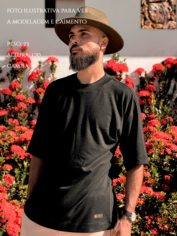Modelagem Oversized: Com um caimento perfeito, a camiseta proporciona conforto sem abrir mão de um estilo moderno e despojado, pensado para o público urbano.