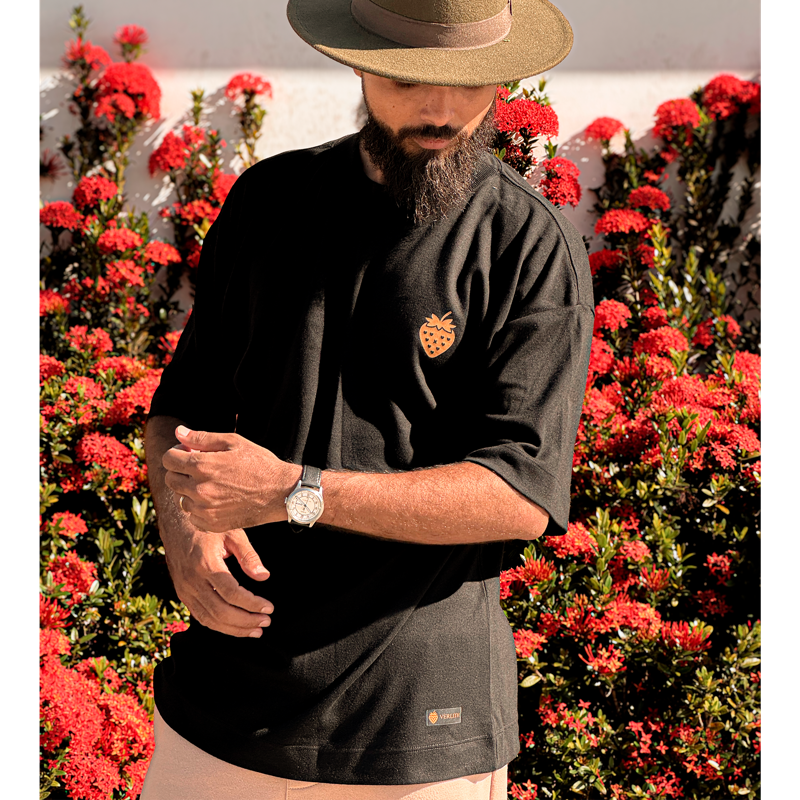 Modelagem Oversized: Com um caimento perfeito, a camiseta proporciona conforto sem abrir mão de um estilo moderno e despojado, pensado para o público urbano.