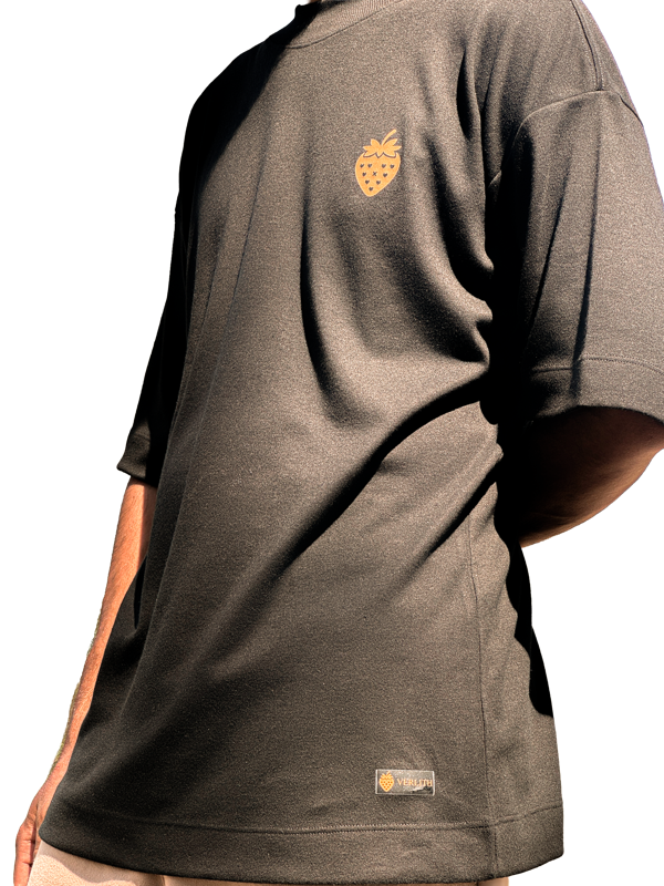 A modelagem oversized proporciona um caimento amplo e confortável, equilibrando liberdade de movimento e estética moderna. A gola canelada 2×1 com 3,5 cm adiciona um detalhe refinado, elevando o visual e reforçando a construção premium da peça.